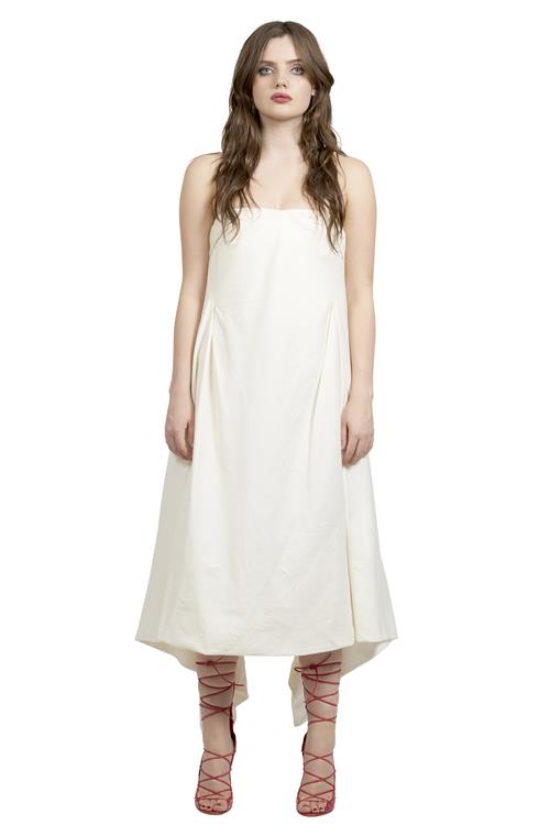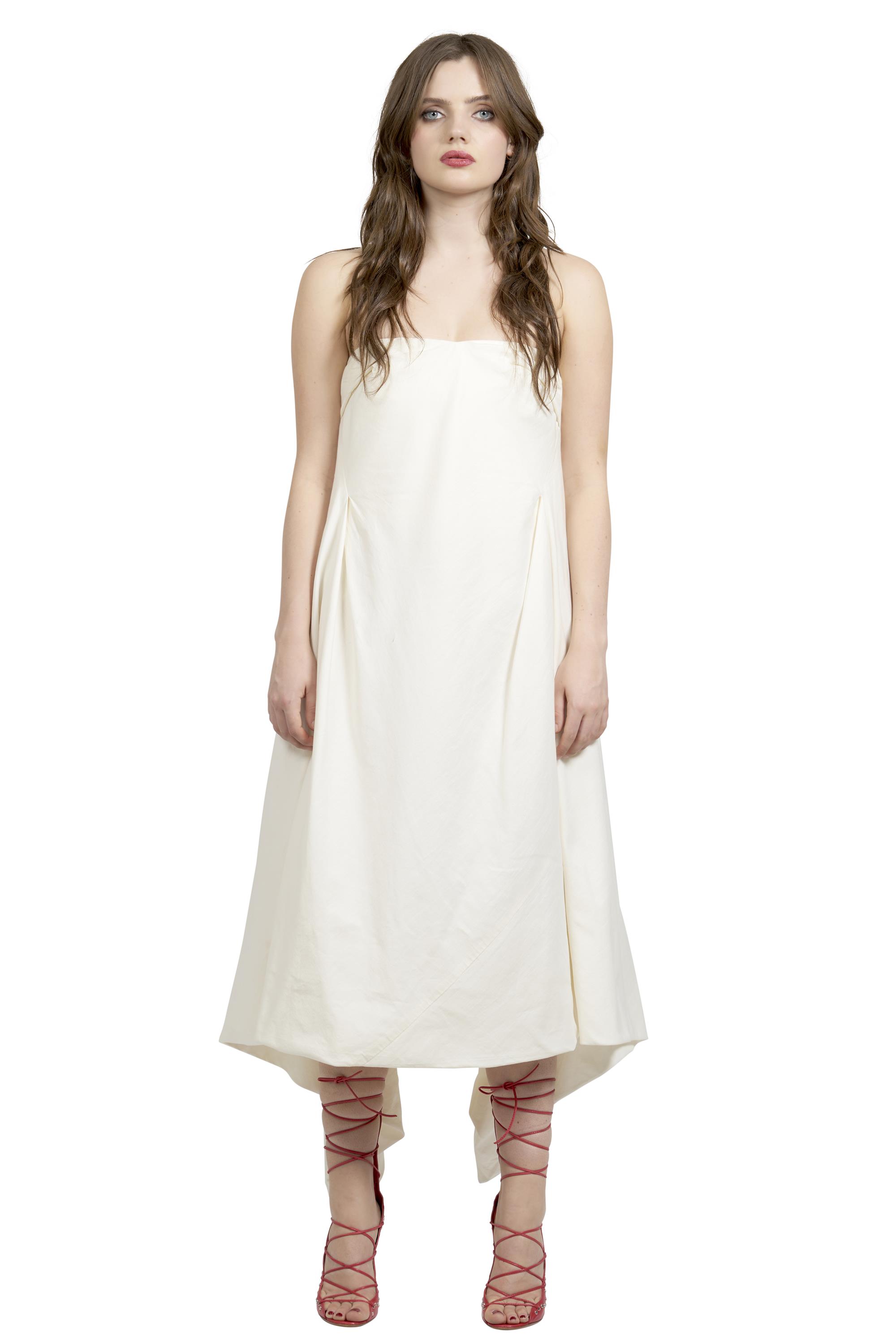 Styled in white cotton designed with internal corsetry and assymetrical hemline, marked size IT40.