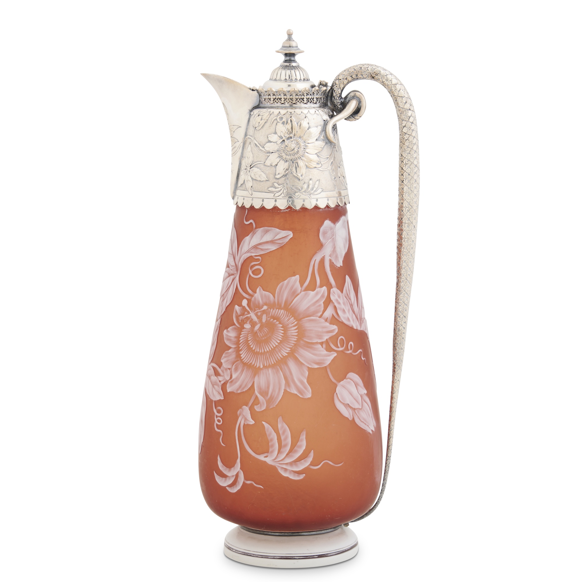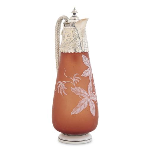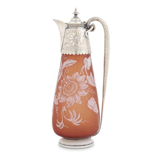 A VICTORIAN SILVER PLATE-MOUNTED CAMEO GLASS CLARET JUG