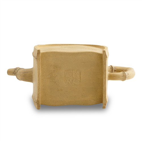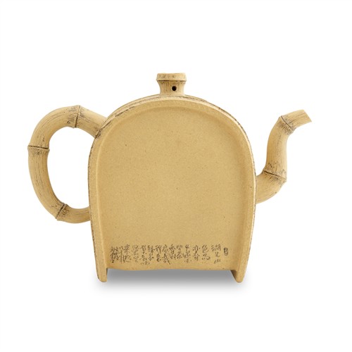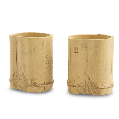 A SET OF BAMBOO-FORM YIXING TEAPOT AND TWO CUPS BY LU WENXIA (B. 1966)