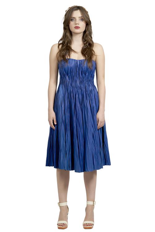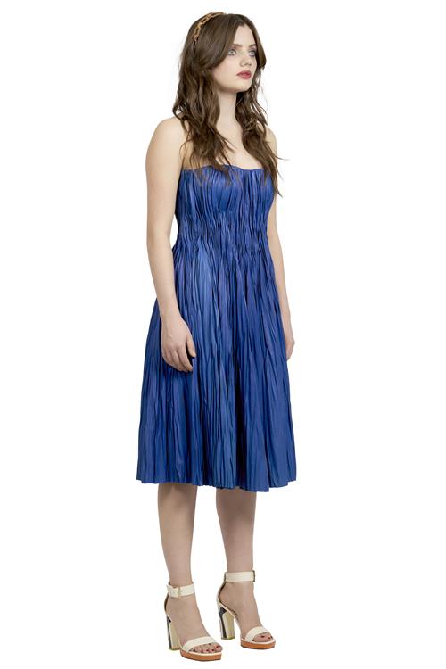 Styled in royal blue pleated lambskin leather, designed with internal corsetry, A-line skirt and zip fastening centre back, marked size 38.