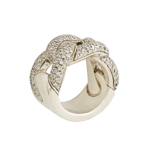 Of chain link design, pavé-set with brilliant-cut diamonds, the diamonds together weighing approximately 2.05 carats, mounted in sterling silver, size U, gross weight approximately 44.2 grams, Italian workshop registration marks, signed Pianegonda.