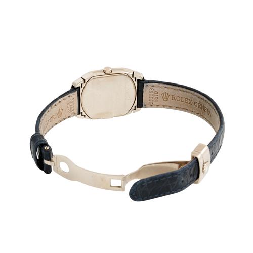 Closure: Rolex black leather and 18ct white gold folding clasp
