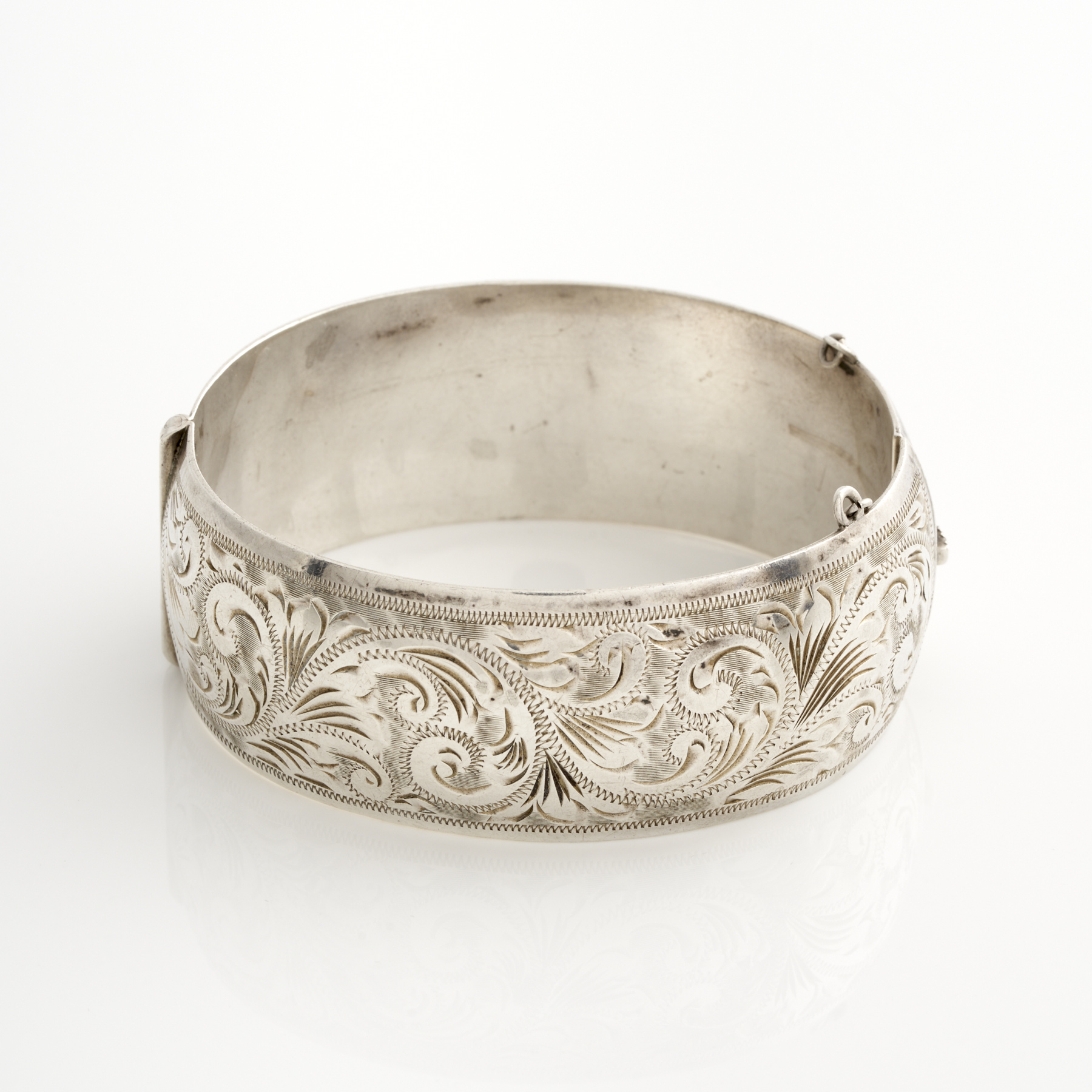 A VINTAGE SCANDINAVIAN ENGRAVED SILVER BANGLE, INNER DIAMETER 60MM