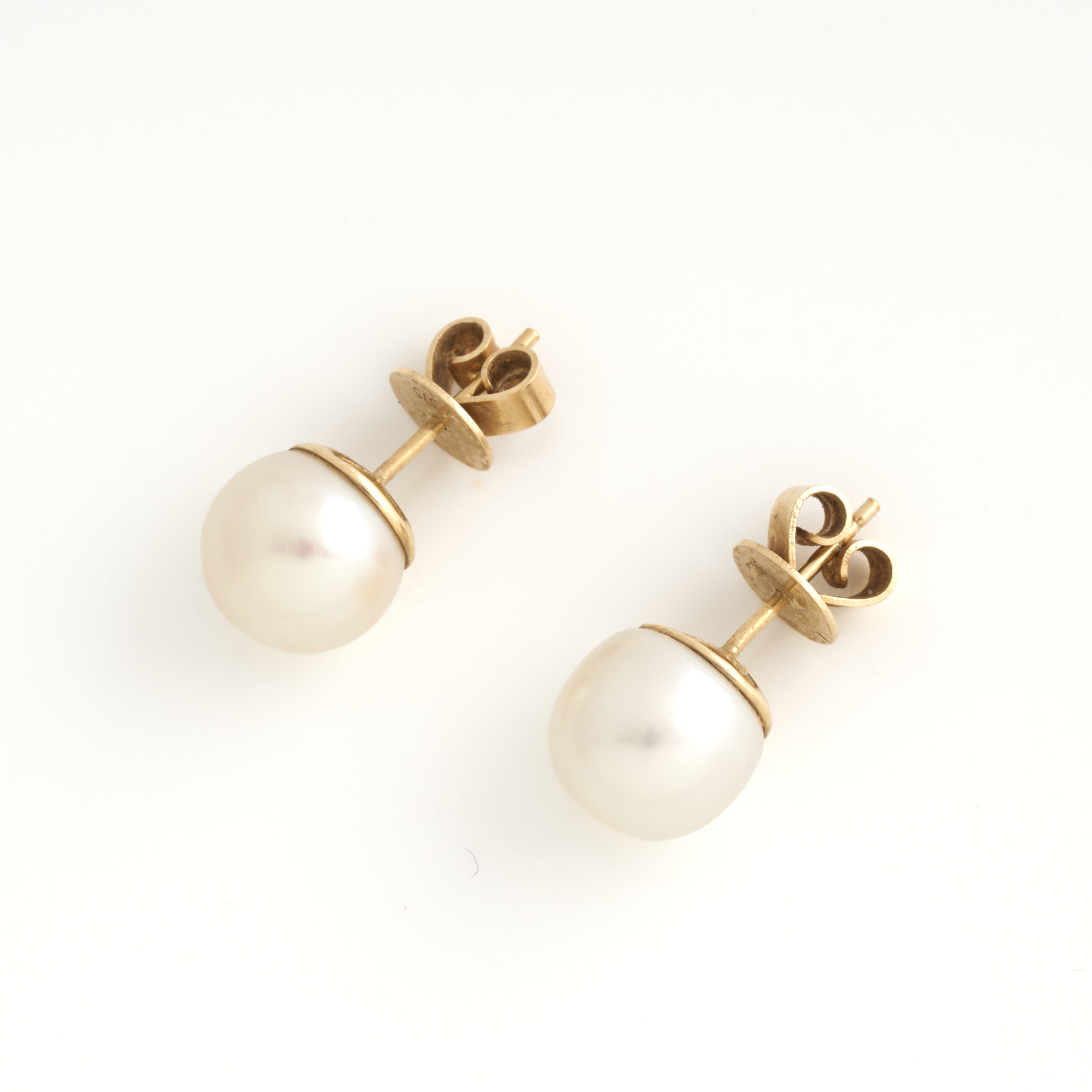 A PAIR OF SOUTH SEA PEARL EARRINGS IN 9CT GOLD, TO POST AND BUTTERFLY FITTINGS, THE PEARLS MEASURING 9.8MM, TOTAL WEIGHT 3.78GMS