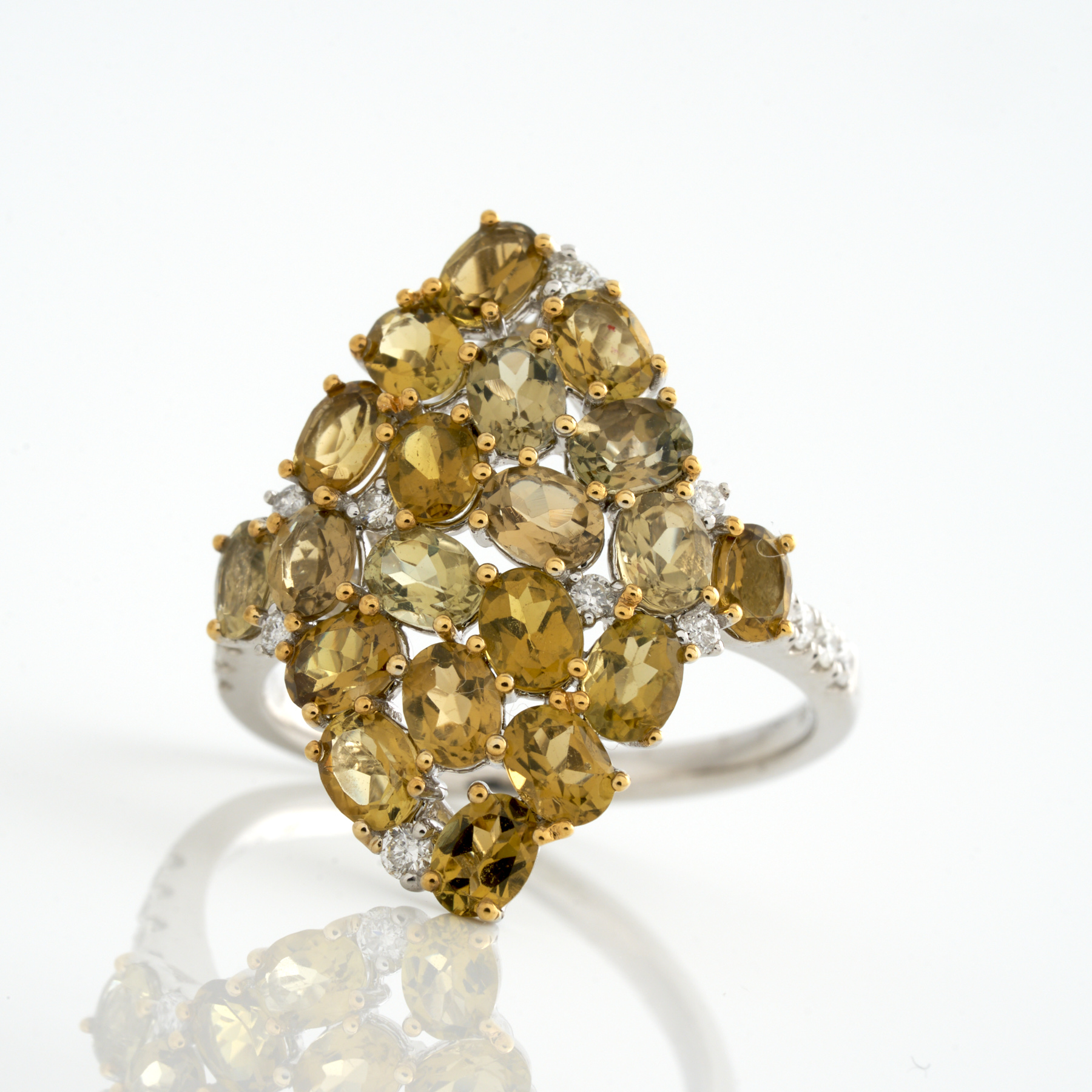 A LIGHT YELLOWISH BROWN DIAMOND RING IN 18CT WHITE GOLD, THE DIAMOND WEIGHING 6.14CTS, SIZE M, 5.85GMS, ACCOMPANIED BY A VALUATION