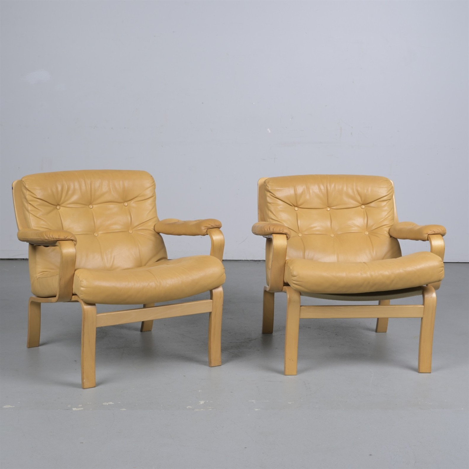 A PAIR OF SCANDINAVIAN TAN LEATHER AMCHAIRS IN THE MANNER OF BRUNO MATHSSON