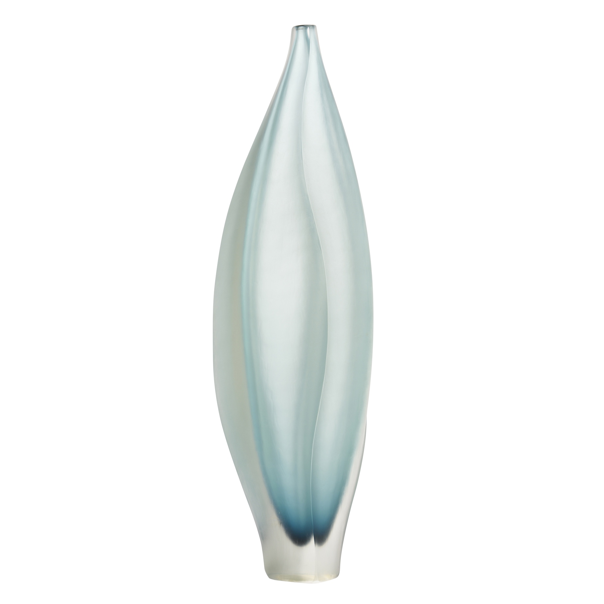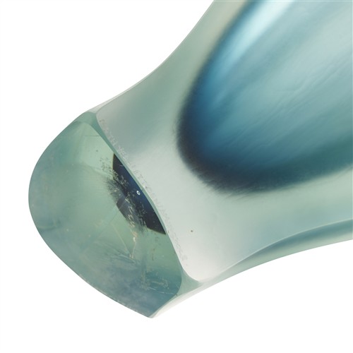 Abstract seed pod form with blue gradation and cold worked texture. Signed and dated to base edge.