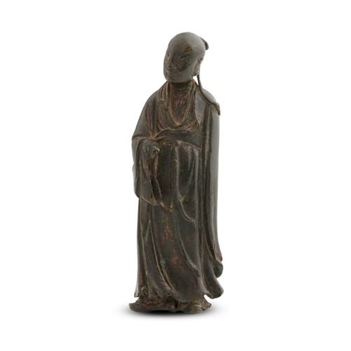 A CHINESE BRONZE FIGURE OF A SCHOLAR, SONG/MING DYNASTY, 13TH/17TH CENTURY