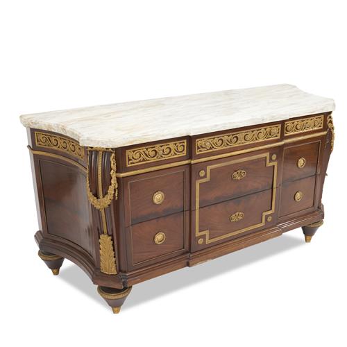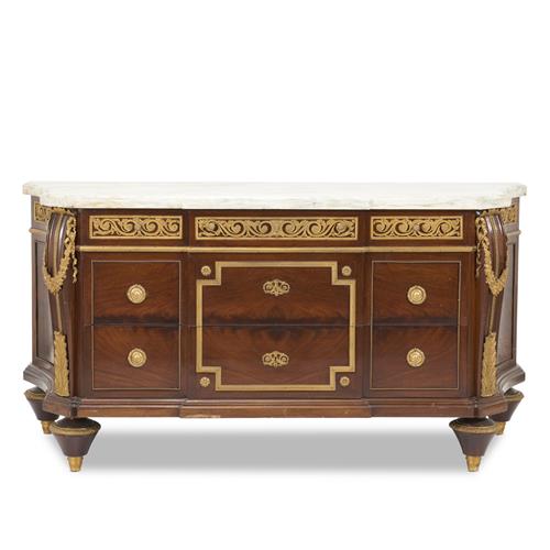 A LOUIS XVI-STYLE GILT BRONZE-MOUNTED MAHOGANY COMMODE IN THE MANNER OF JEAN-HENRI RIESENER