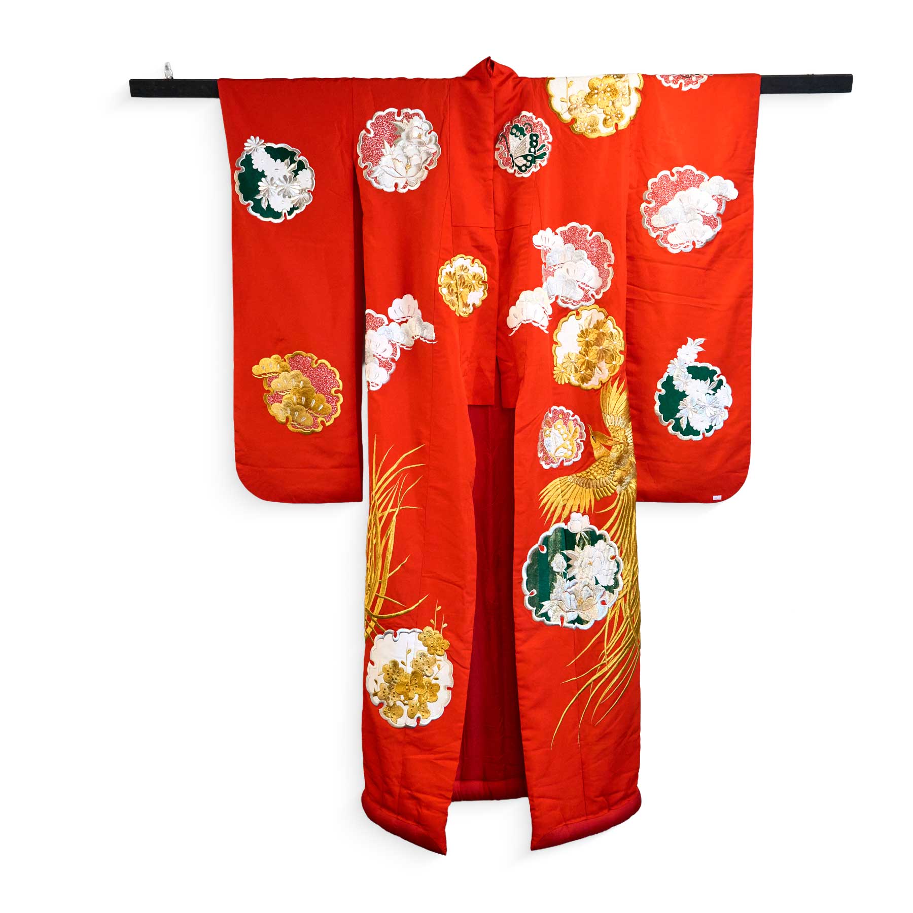 A RED JAPANESE WEDDING KIMONO H.191CM