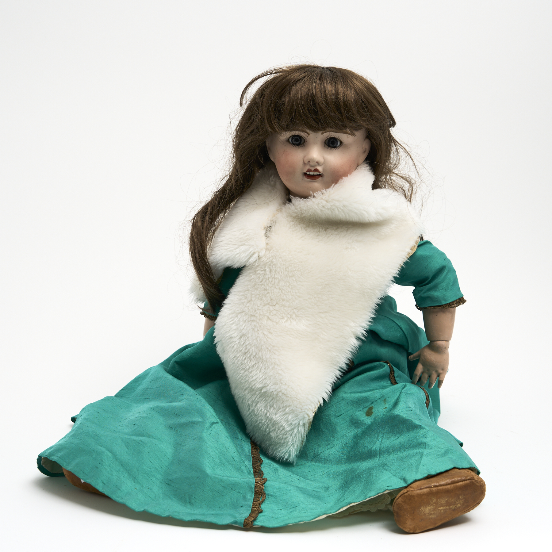 A 1940S JULES VERLINGUE PETITE FRANCAISE DOLL WITH BISQUE PORCELAIN HEAD L.60CM