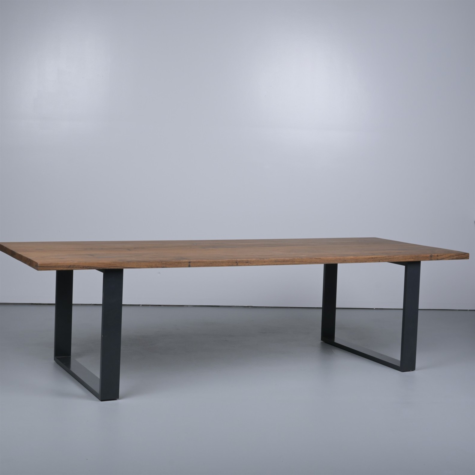 A MARK TUCKEY RECYCLED HARDWOOD AND POWDER COATED STEEL DINING TABLE (73H X 270W X 101D CM) (THIS ITEM MUST BE REMOVED BY PROFESSIONAL CARRIERS OR CLIENTS. LEONARD JOEL STAFF CANNOT ASSIST WITH CARRYING OR DELIVERY OF THIS ITEM)