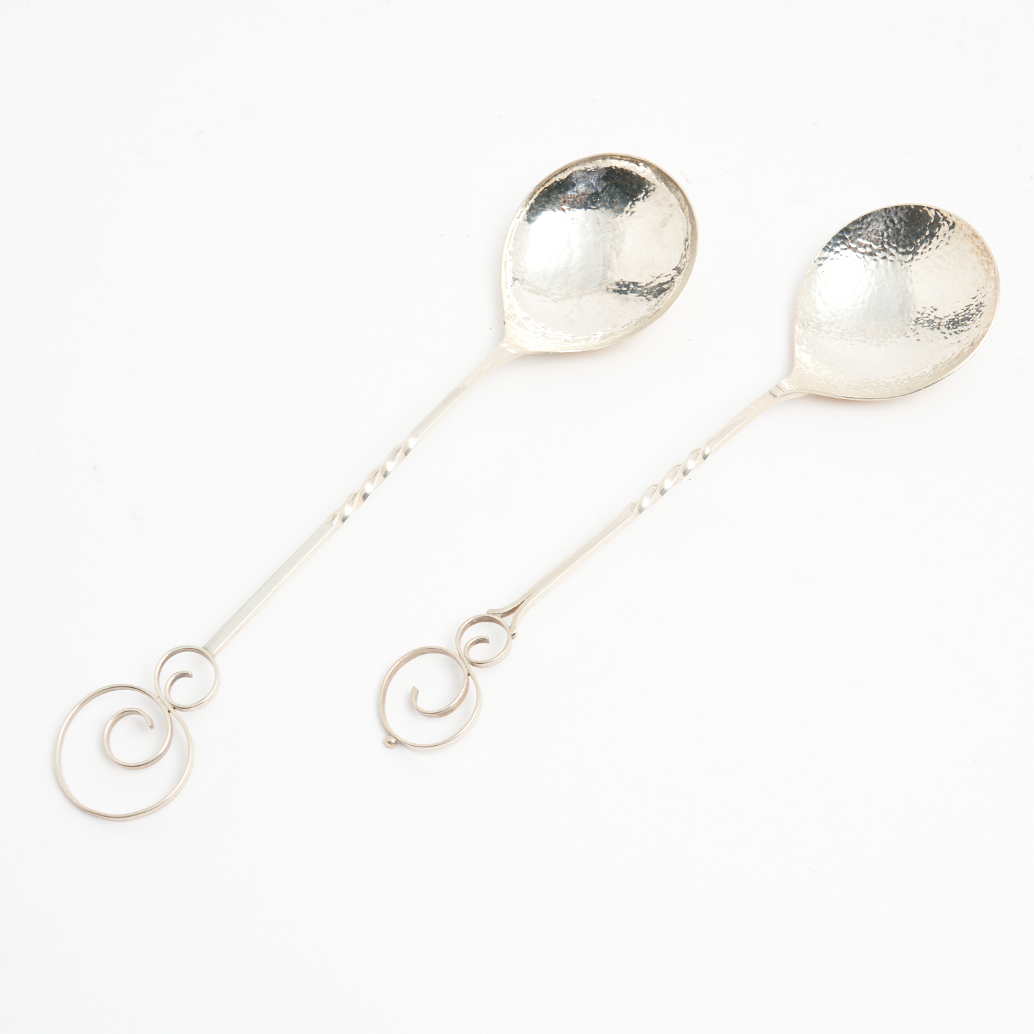 A PAIR OF AUSTRALIAN STERLING SILVER SALAD SERVERS BY SARGISONS, 126G TOTAL WEIGHT