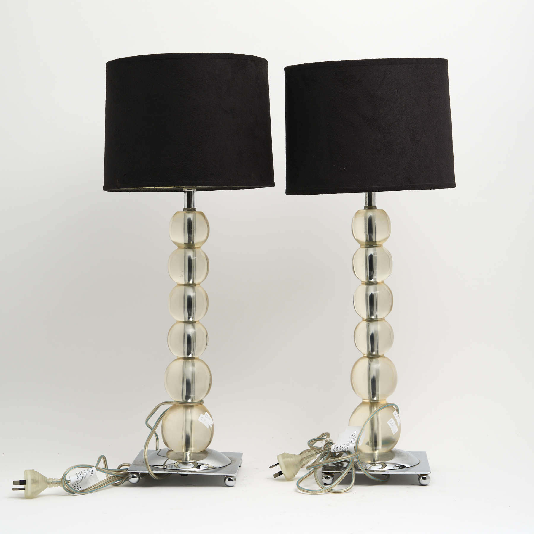 A PAIR OF CONTEMPORARY PERSPEX LAMPS H.60CM