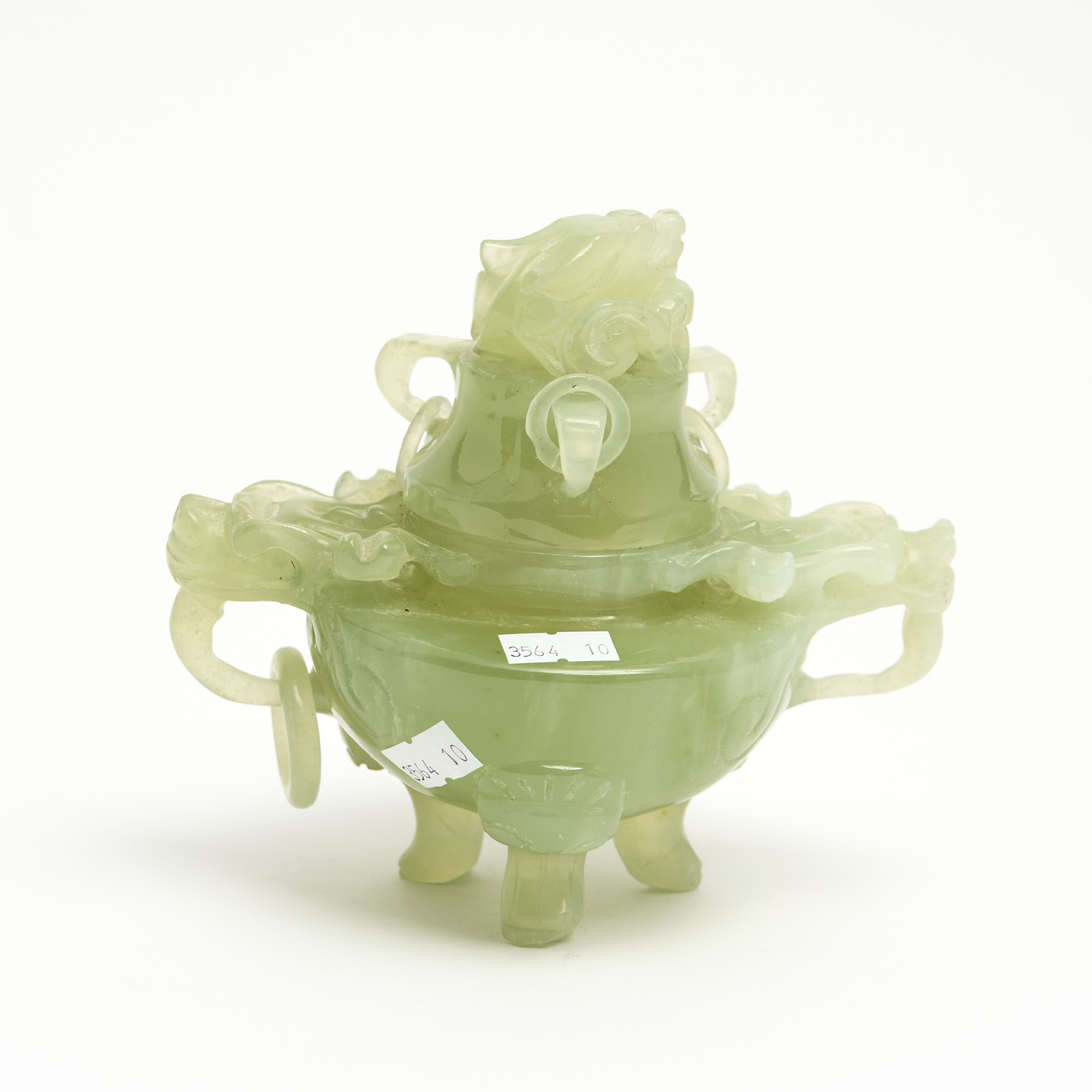 A CHINESE DRAGON AND RING HANDLED LIDDED HARDSTONE CENSOR H14CM