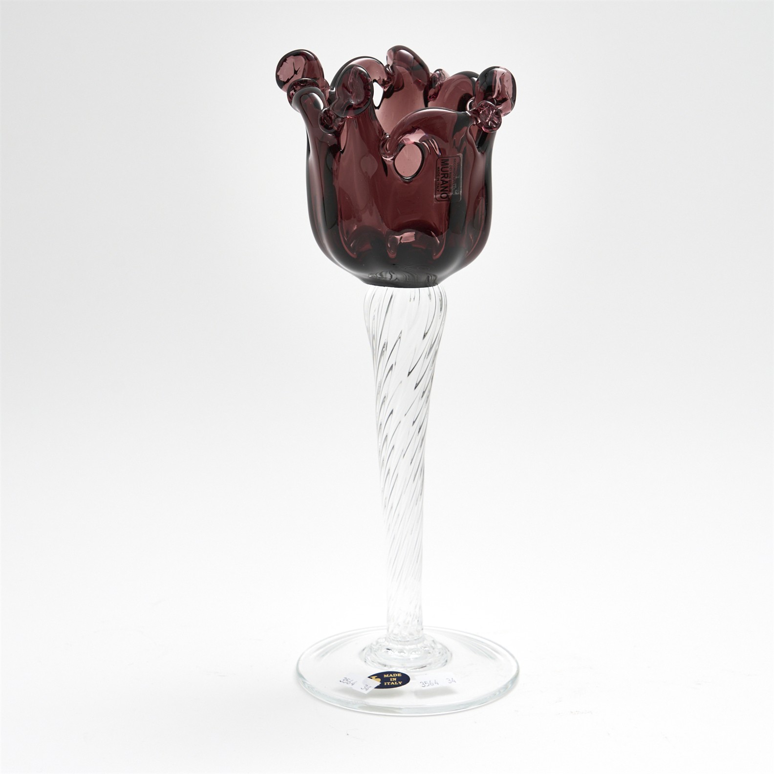 A MURANO TALL GOBLET VASE WITH ORIGINAL LABEL H.34CM