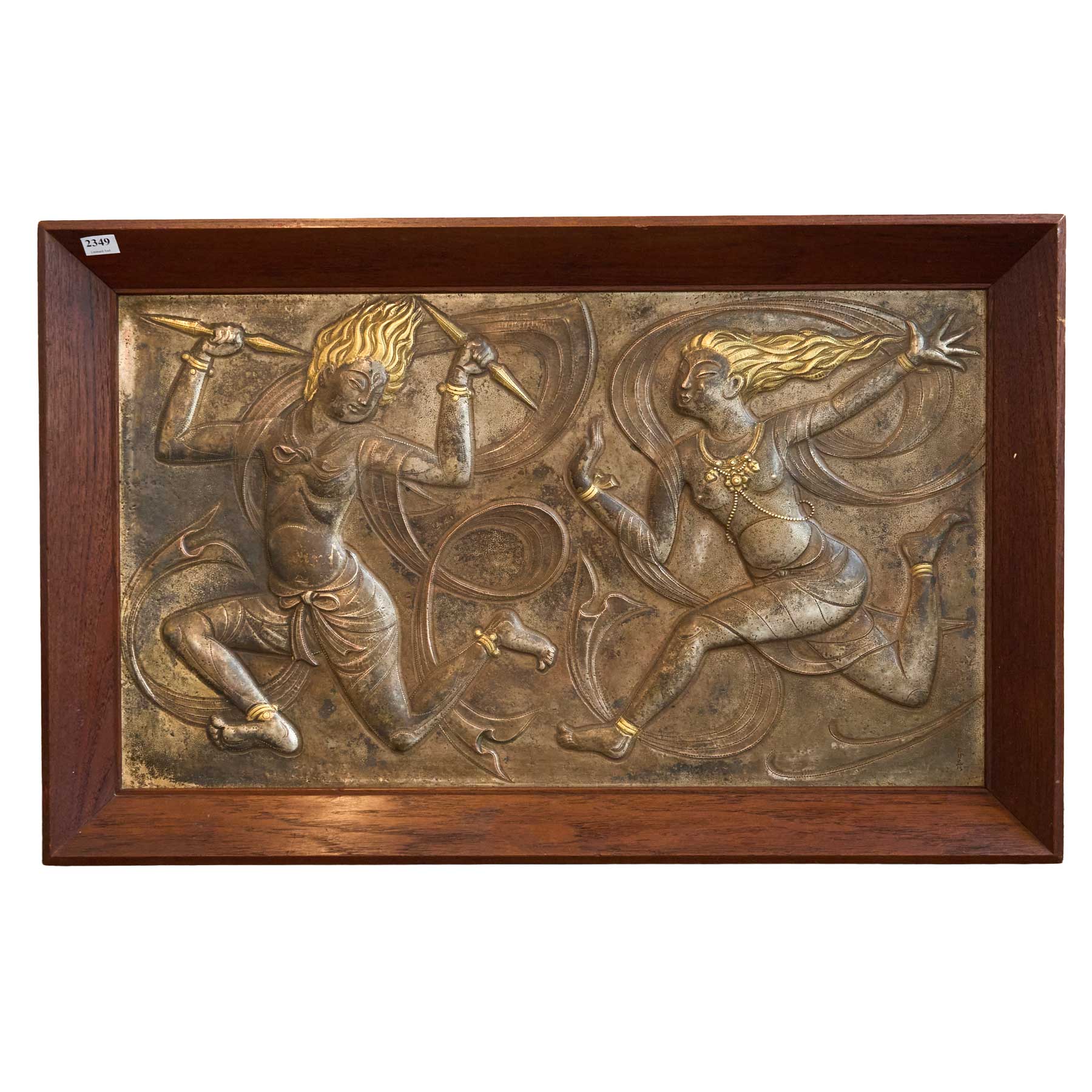 AN EARLY 20TH CENTURY EMBOSSED PLAQUE FRAMED IN ORIGINAL WOODEN MOUNT H.47CM