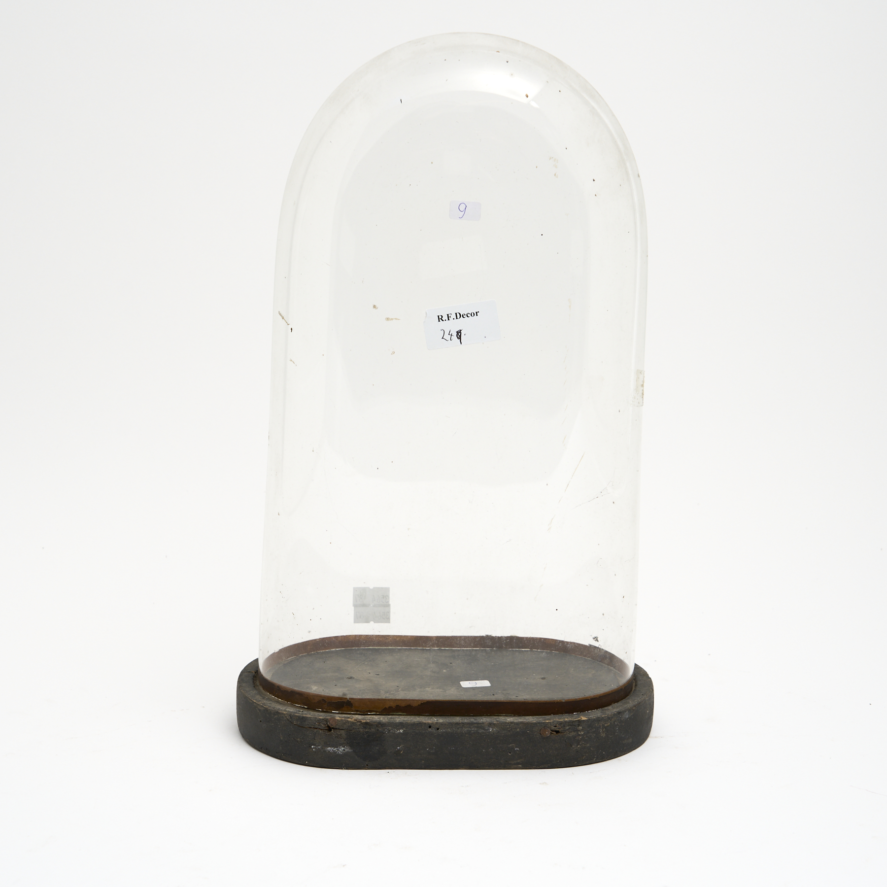 A FRENCH EBONISED WOODEN BASED OVAL DISPLAY DOME H.38.5CM