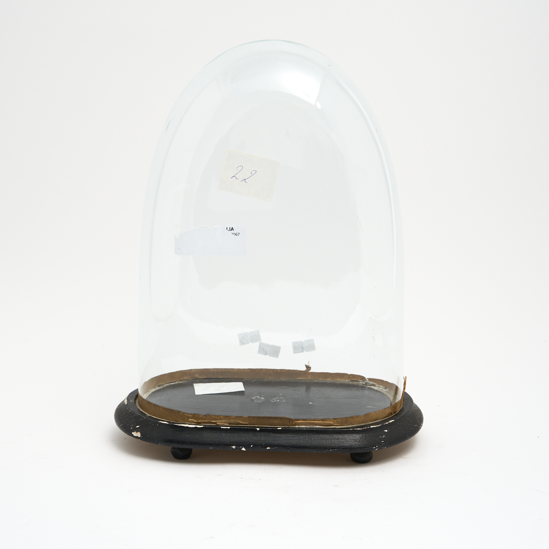 A FRENCH EBONISED WOODEN BASED OVAL DISPLAY DOME H.37CM