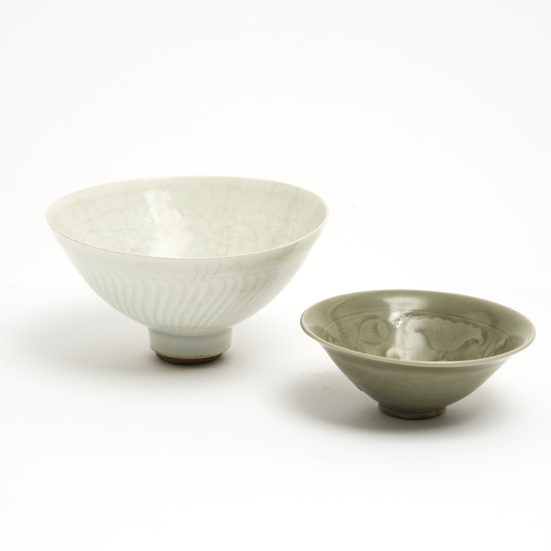 TWO CHINESE PORCELAIN CELADON GLAZED BOWLS DIA.13CM (LARGEST)