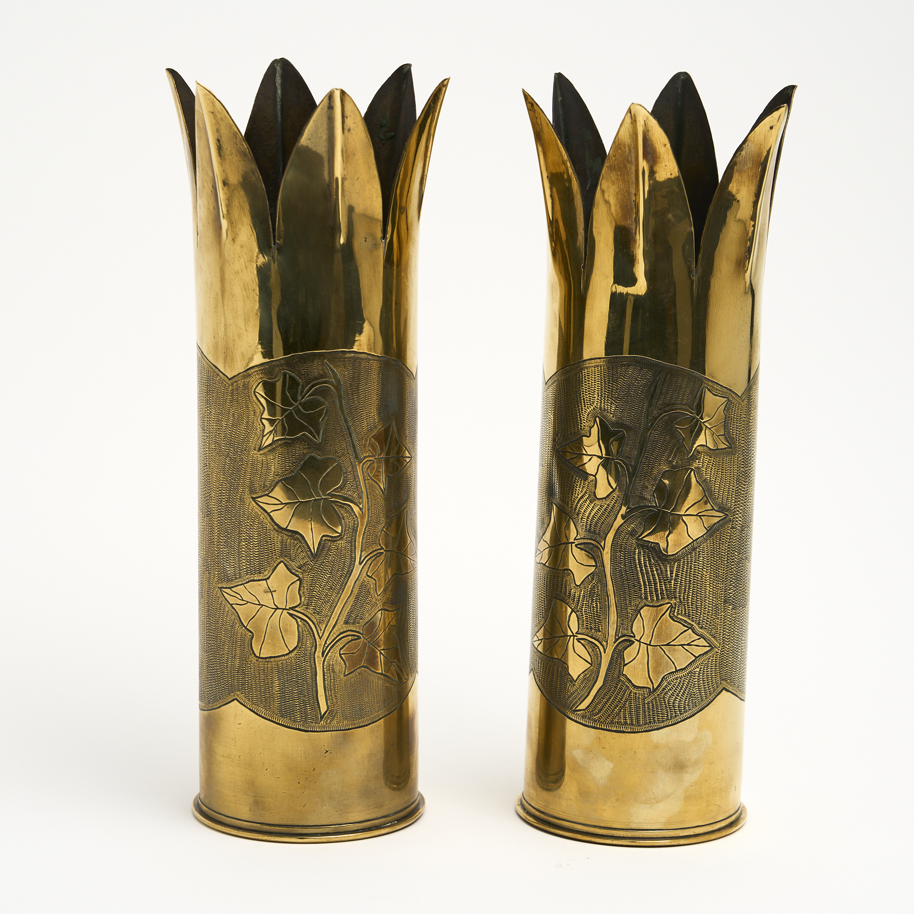 A PAIR OF TRENCH ART SHELLS H.28CM