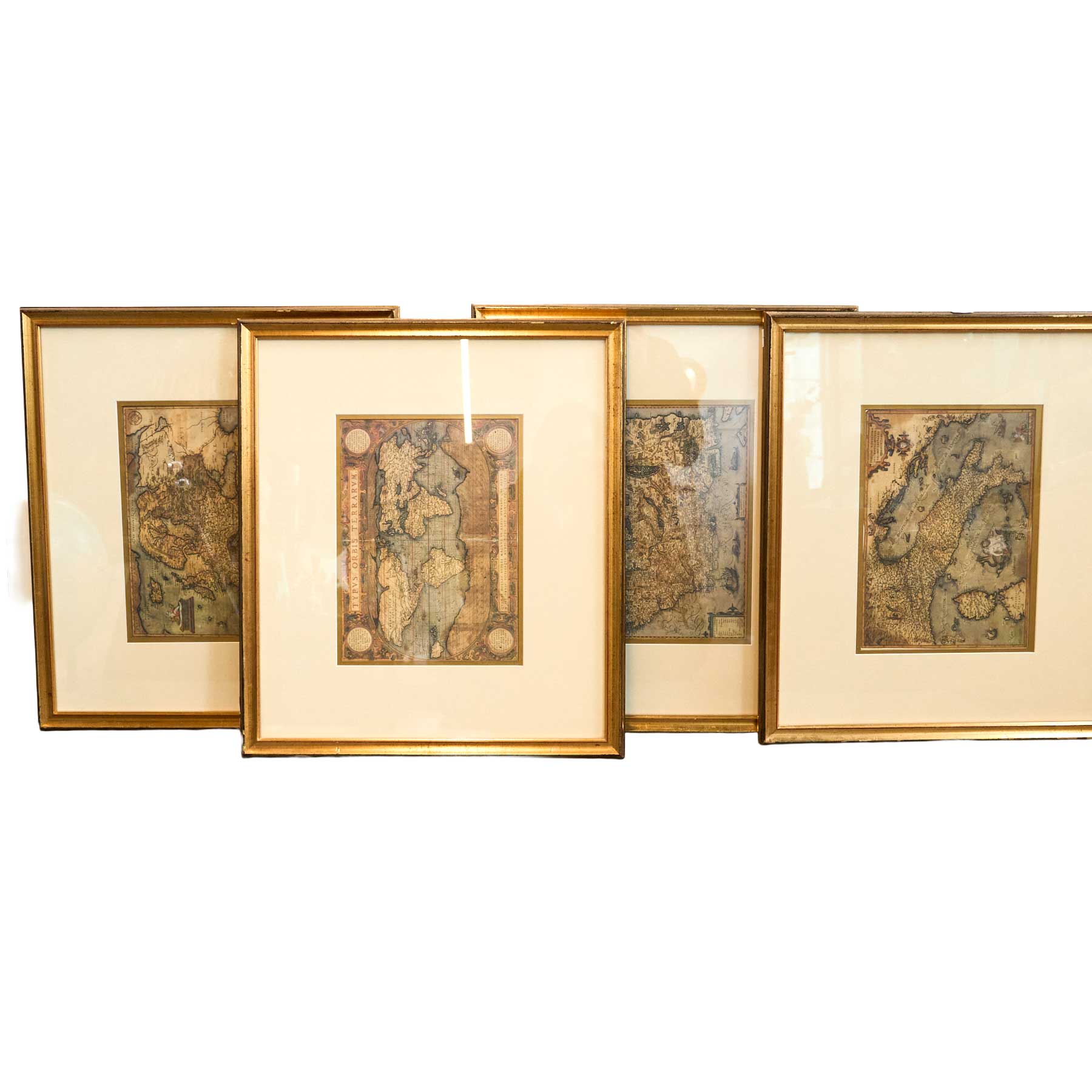 A SET OF FOUR FRAMED PRINTS OF VINTAGE MAPS 54 X 47CM (FRAME SIZE)