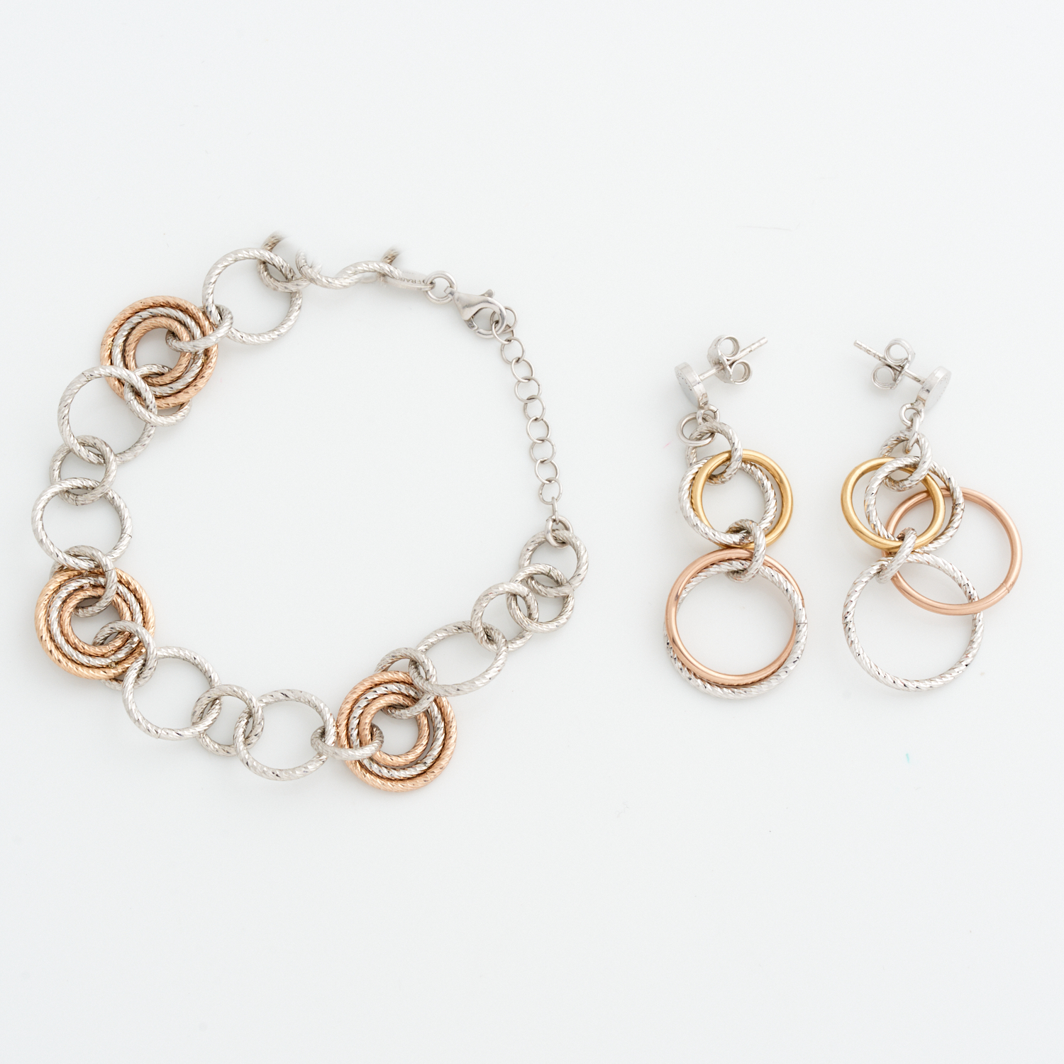 FRABOSO, A SUITE IN STERLING SILVER COMPRISING A BRACELET, 180MM-210MM, AND EARRINGS TO POST AND BUTTERFLY FITTINGS, 45MM