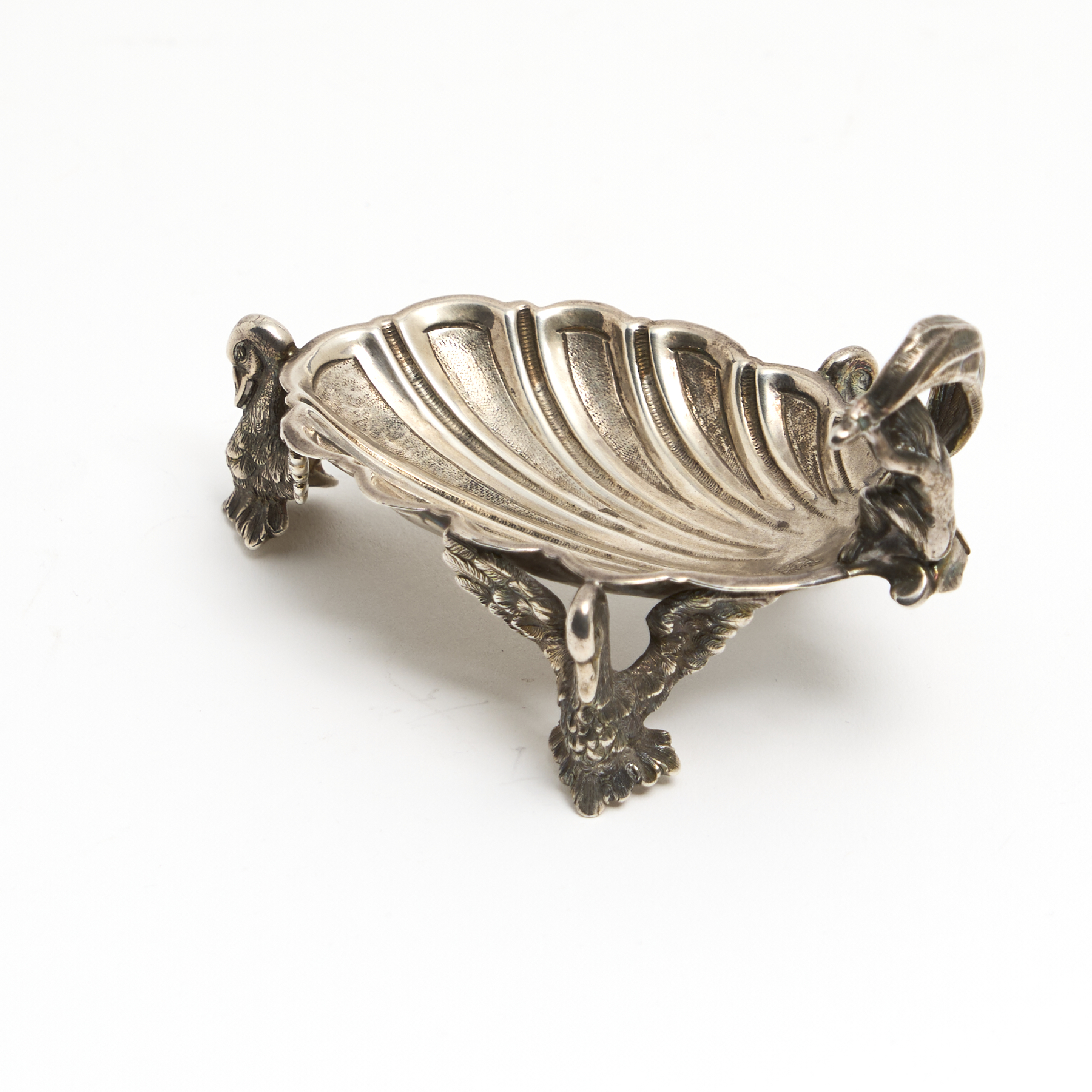 A 19TH CENTURY STERLING SILVER SHELL FORM DISH, BIRMINGHAM 1863 L.9CM