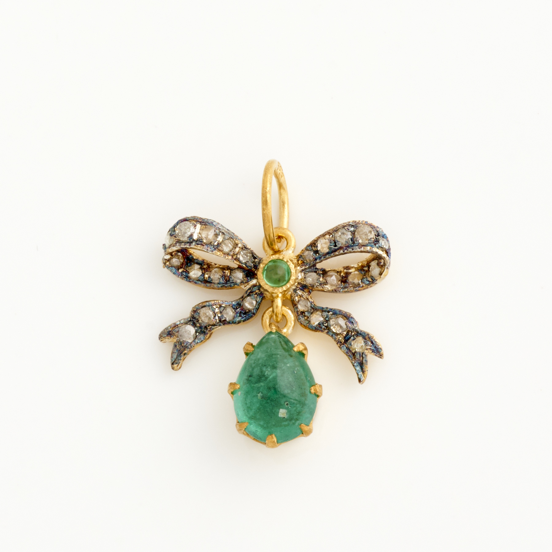 AN EMERALD AND DIAMOND PENDANT IN 9CT GOLD, 15MM, 1.48GMS