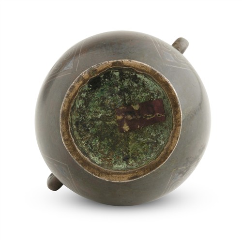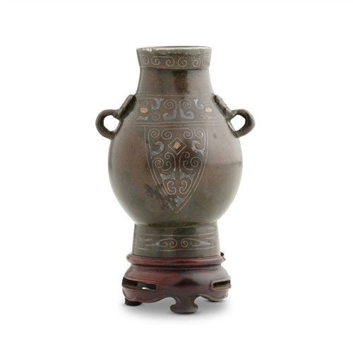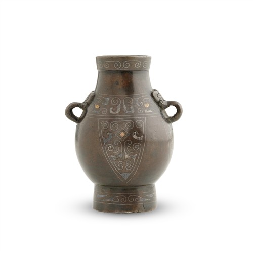 A CHINESE SILVER AND GOLD-INLAID BRONZE VASE, HU, SONG/MING DYNASTY (960 -1644)