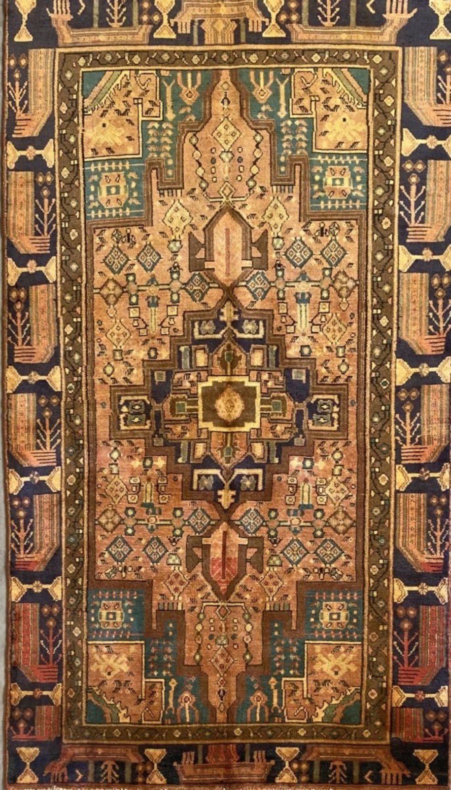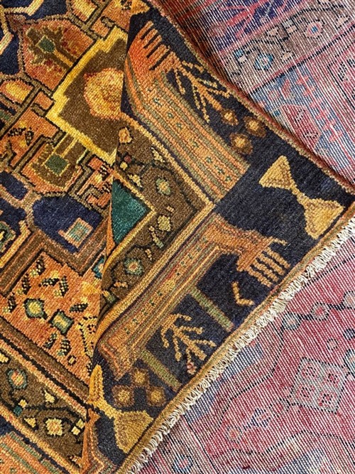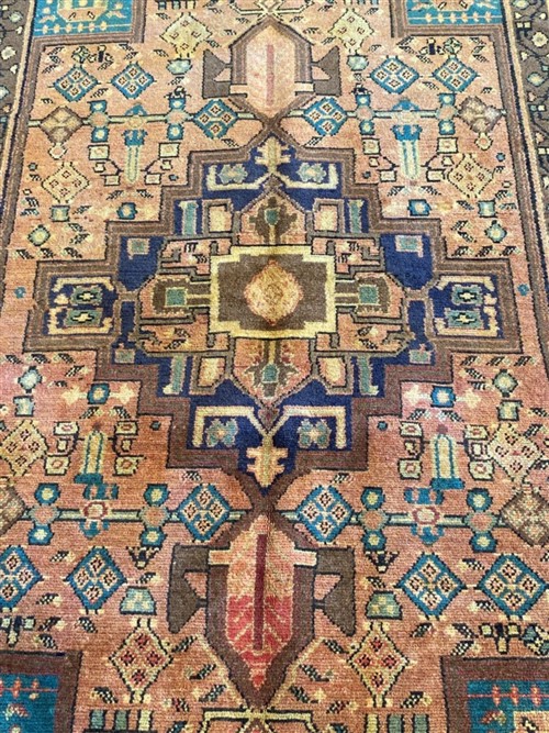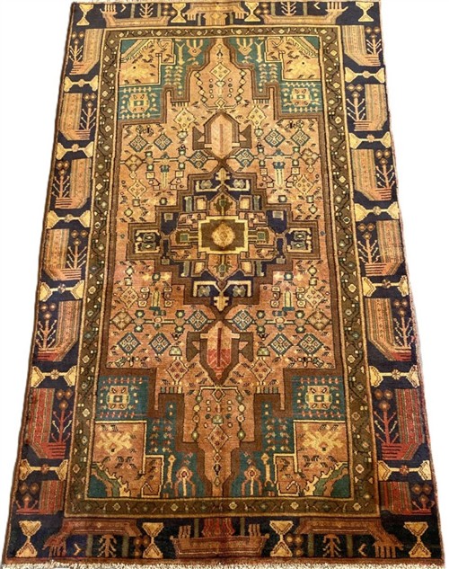 WOOL PILE & ALL VEGETABLE DYES WITH NATURAL ABRASH. HAND-KNOTTED VILLAGE WEAVE FROM THE ZANJAN PROVINCE WITH TRIBAL DESIGN OF A DOMINANT ANCHORED MEDALLION IN A FIELD OF FLORAL & GEOMETRIC PATTERNS. THE ENTIRE IN SHADES OF INDIGO, RUST, CREAM & CARAMEL.