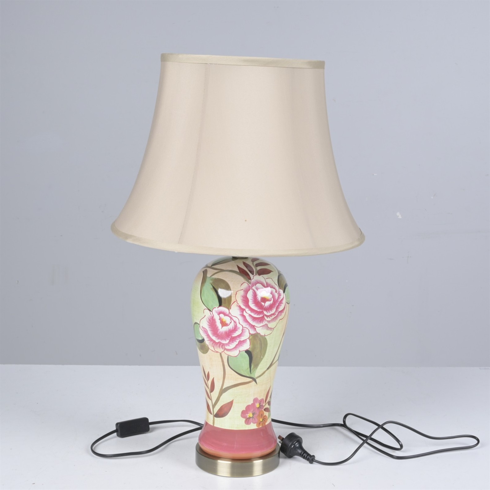 A CERAMIC TABLE LAMP WITH FLORAL DESIGN (66H X 41DIA CM)