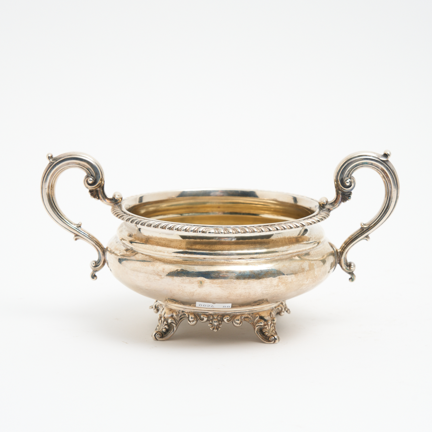 A STERLING SILVER TWO HANDLED SUGAR BASIN, 348G, 23.5CM