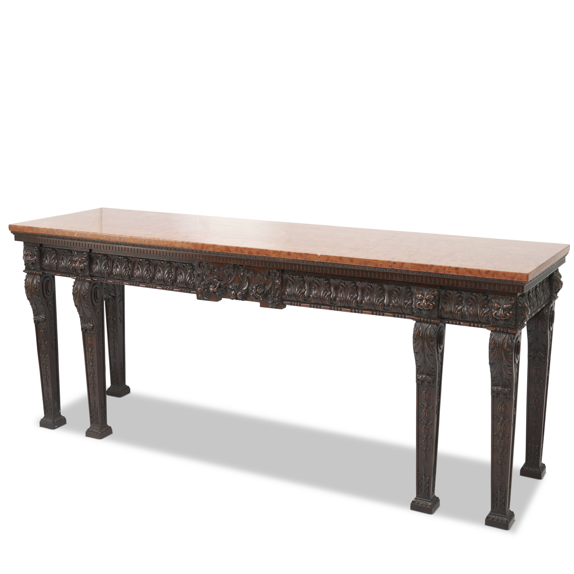 A FINE AND IMPRESSIVE LARGE GEORGE III-STYLE MARBLE AND MAHOGANY SERVING TABLE