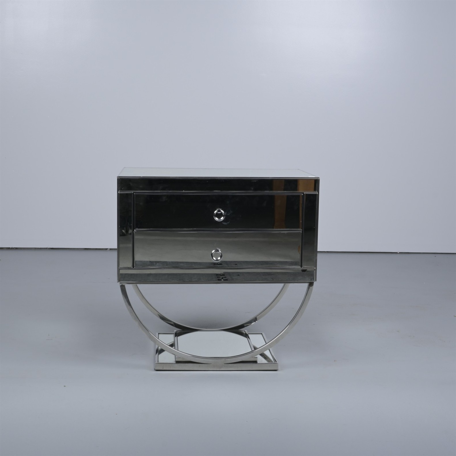 A CONTEMPORARY MIRRORED SIDE TABLE (71CM H X 71CM W X 46CM D)