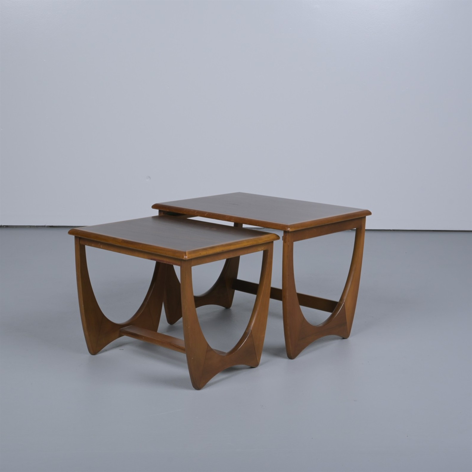 A NEST OF TWO TEAK AND BLACK BEAN COFFEE TABLES BY KALMAR (43CM H X 57CM W X 46CM D)
