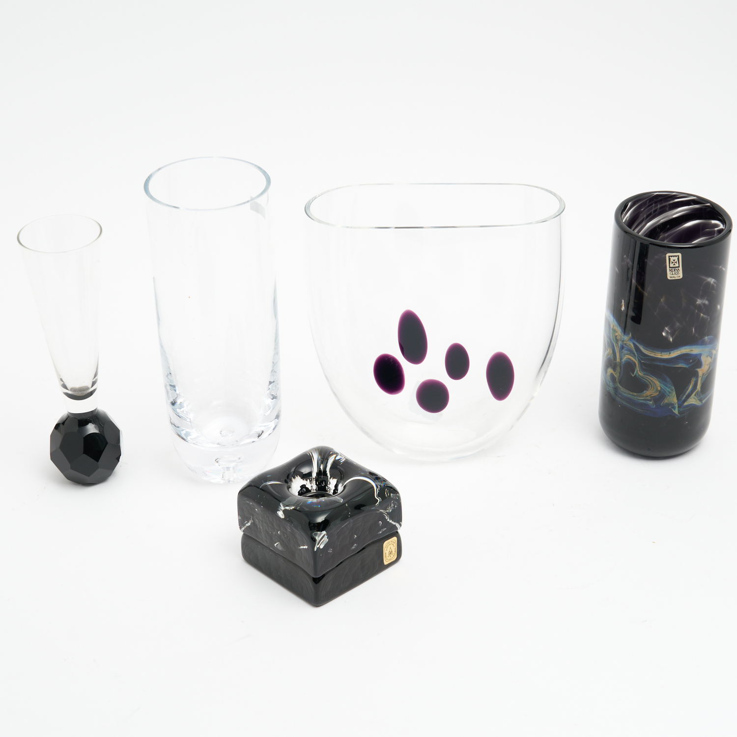 FIVE PIECES OF MODERN EUROPEAN GLASS INCLUDING MDINA, CARPATHIA AND JIZERSKE SKLO H.23CM