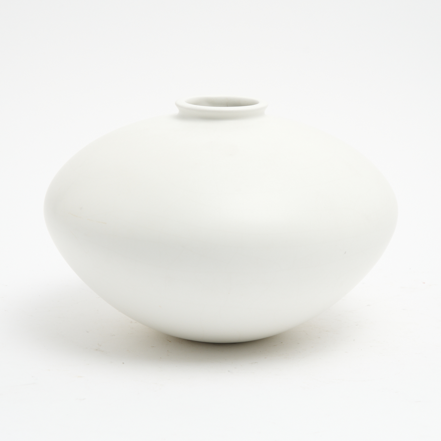 A KOREAN MOON JAR WITH A PORCELAIN BODY AND MATTE MILKY WHITE GLAZE L.25CM