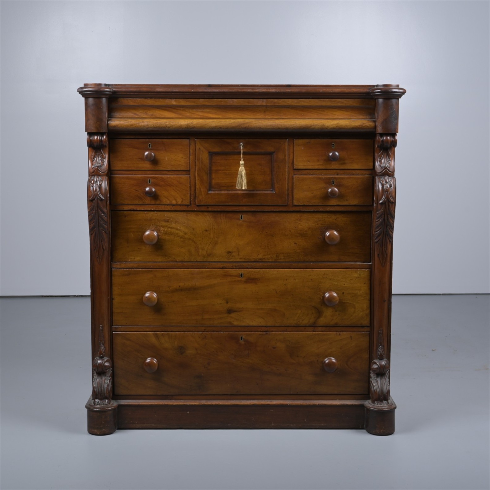 A VICTORIAN MAHOGANY CHEST OF DRAWERS (134CM H X 122CM W X 62CMD) (THIS ITEM MUST BE REMOVED BY PROFESSIONAL CARRIERS OR CLIENTS. LEONARD JOEL STAFF CANNOT ASSIST WITH CARRYING OR DELIVERY OF THIS ITEM)
