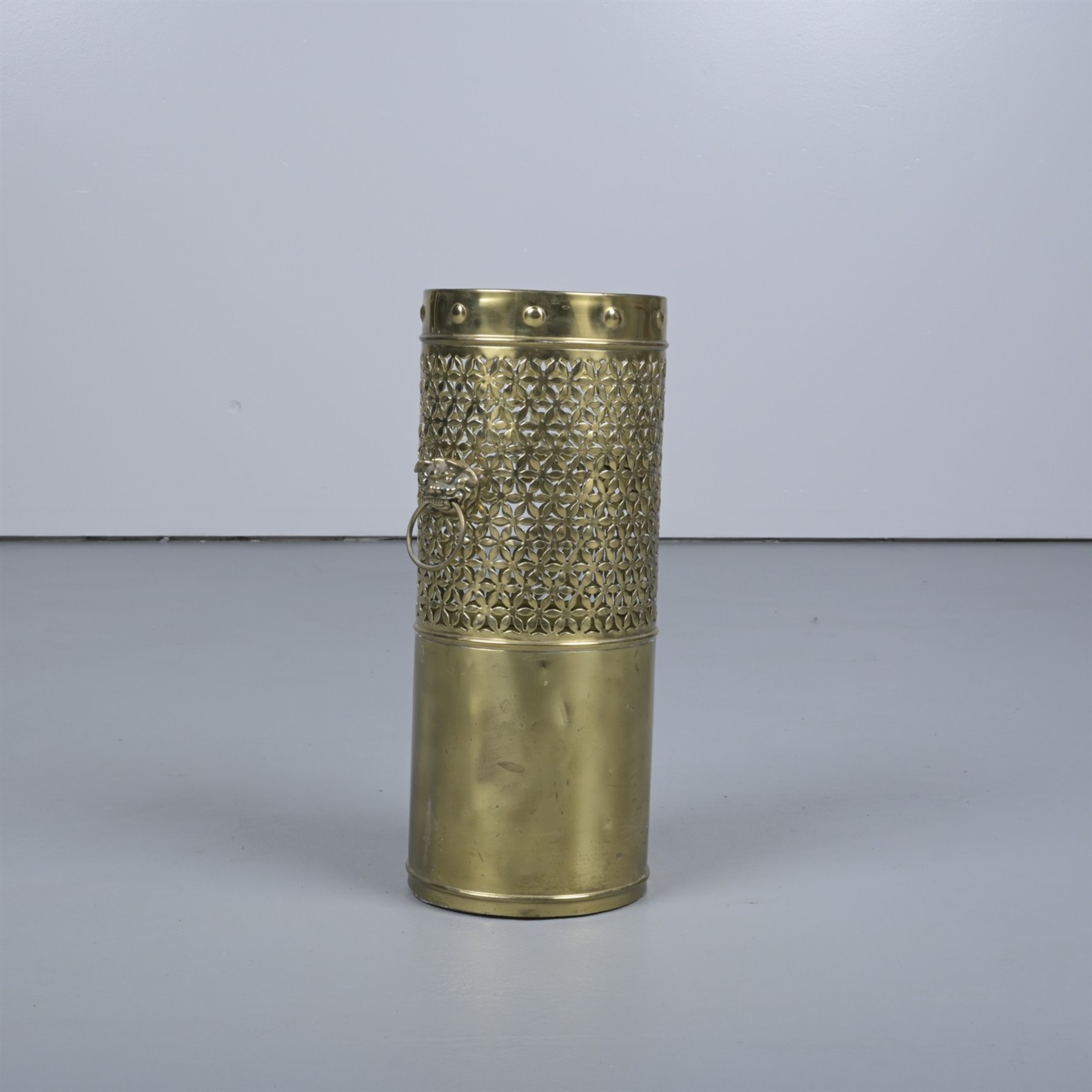 A CHINESE PIERCED BRASS CANE/STICK STAND (50CM H X 21M DIA)