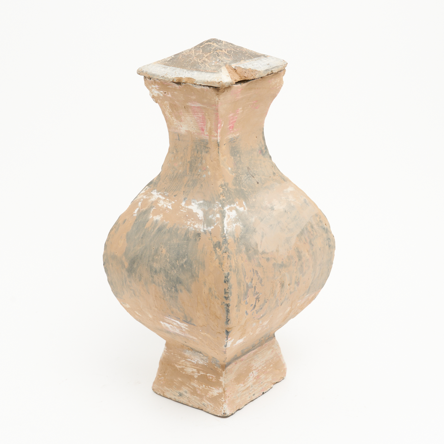 A CHINESE JAR, HAN DYNASTY (DAMAGE TO COVER) H.43CM