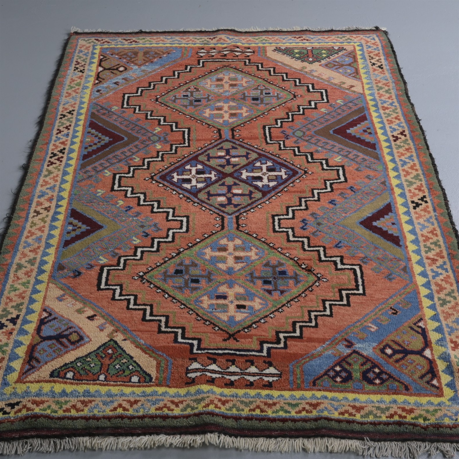 A HANDMADE WOOLLEN PERSIAN GABBEH RUG (240CM L X 146CM W)