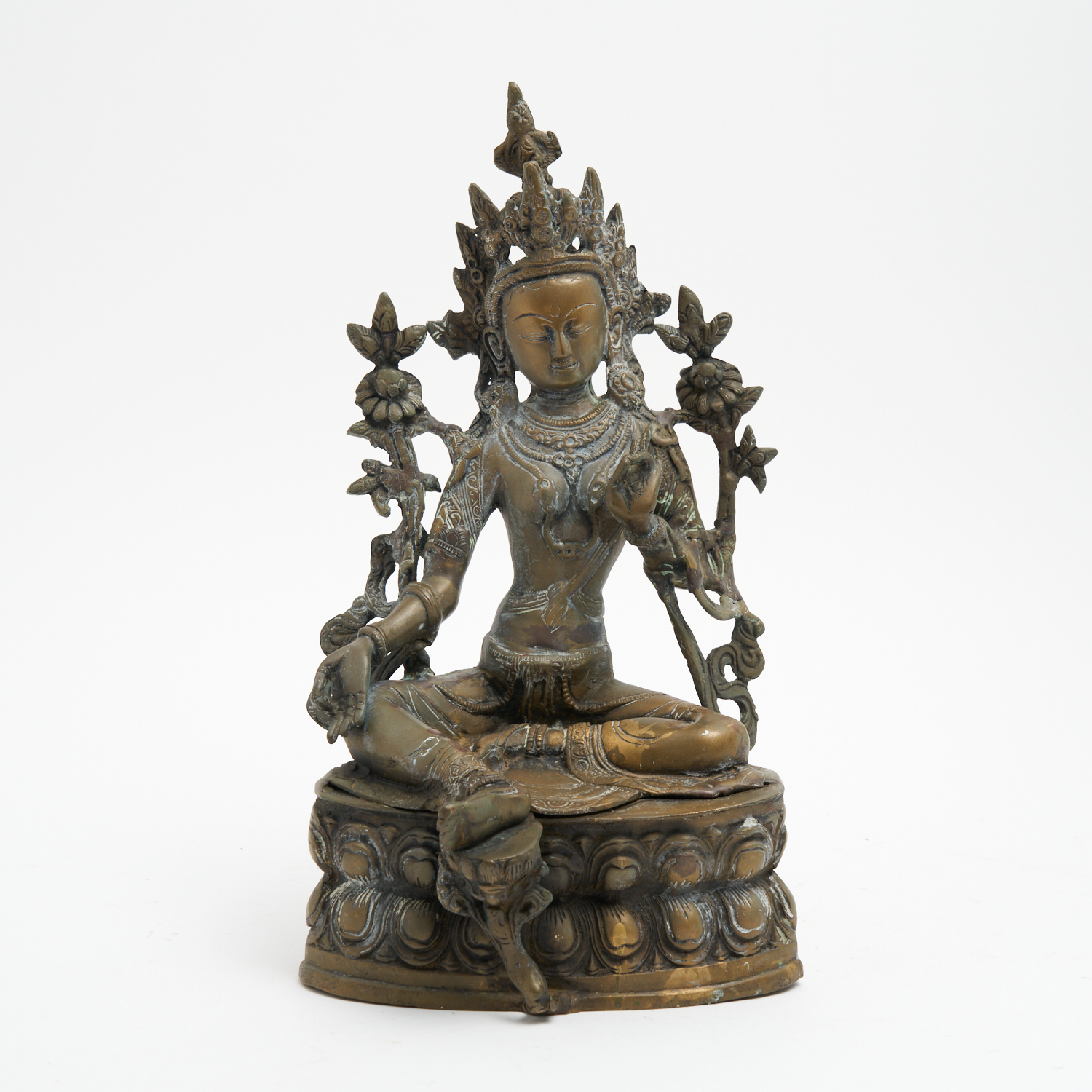 A 19TH CENTURY TIBETAN BRONZE SEATED BUDDHA H.37CM