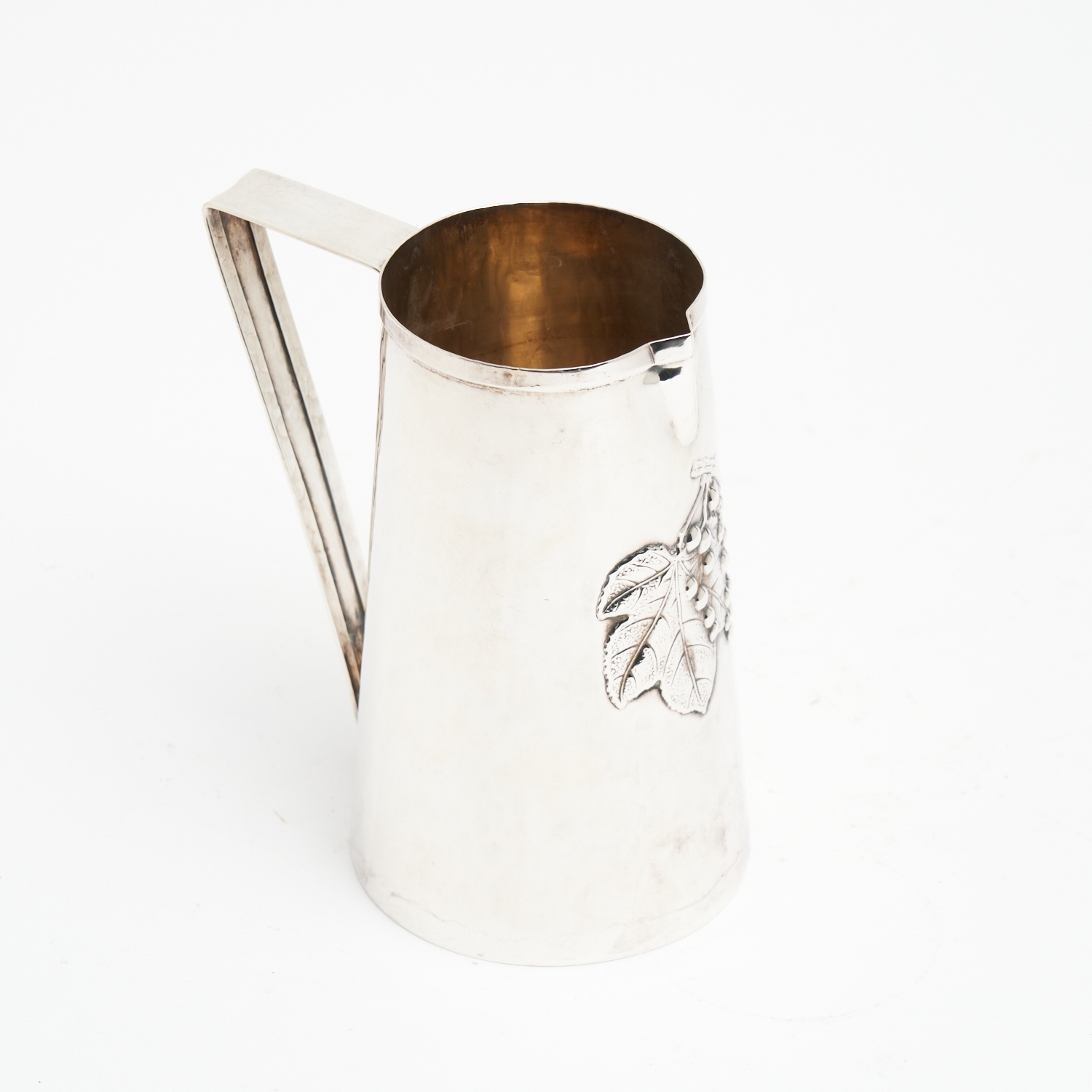 A SILVER WINE JUG WITH GRAPE DECORATION TO FRONT, MARKED AS STERLING 925, 312G H.17CM
