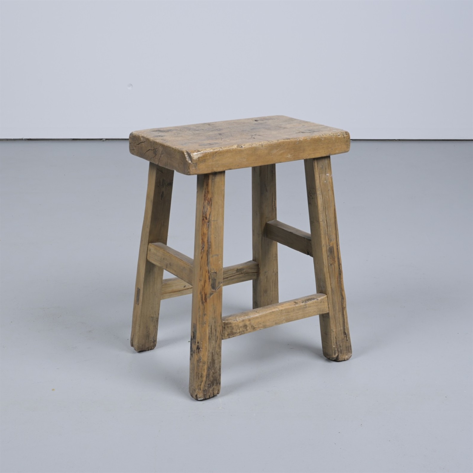 A HARDWOOD JOINT STOOL (52CM H X 41CM W X 26CM D)
