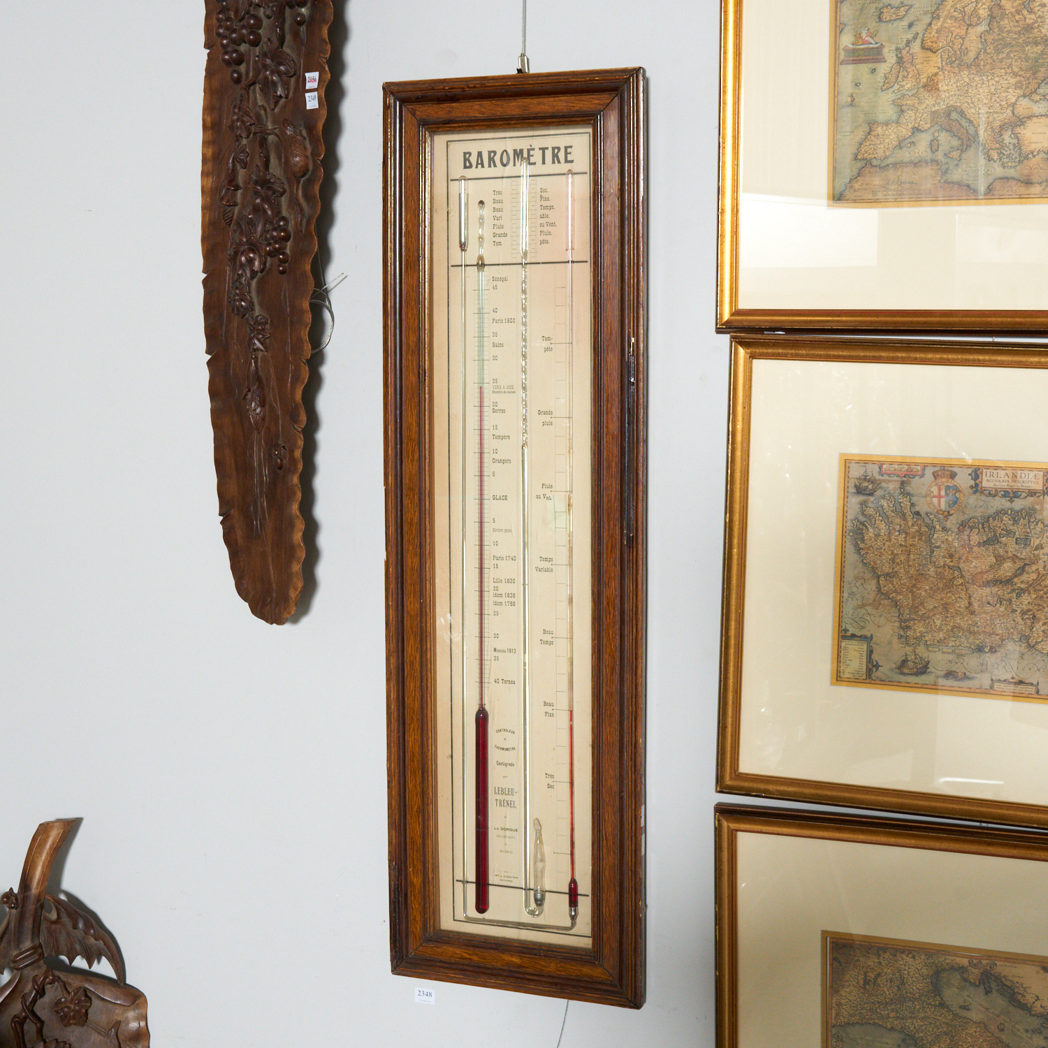 A TIMBER CASED 19TH CENTURY FRENCH BAROMETER AND THERMOMETER L.97CM