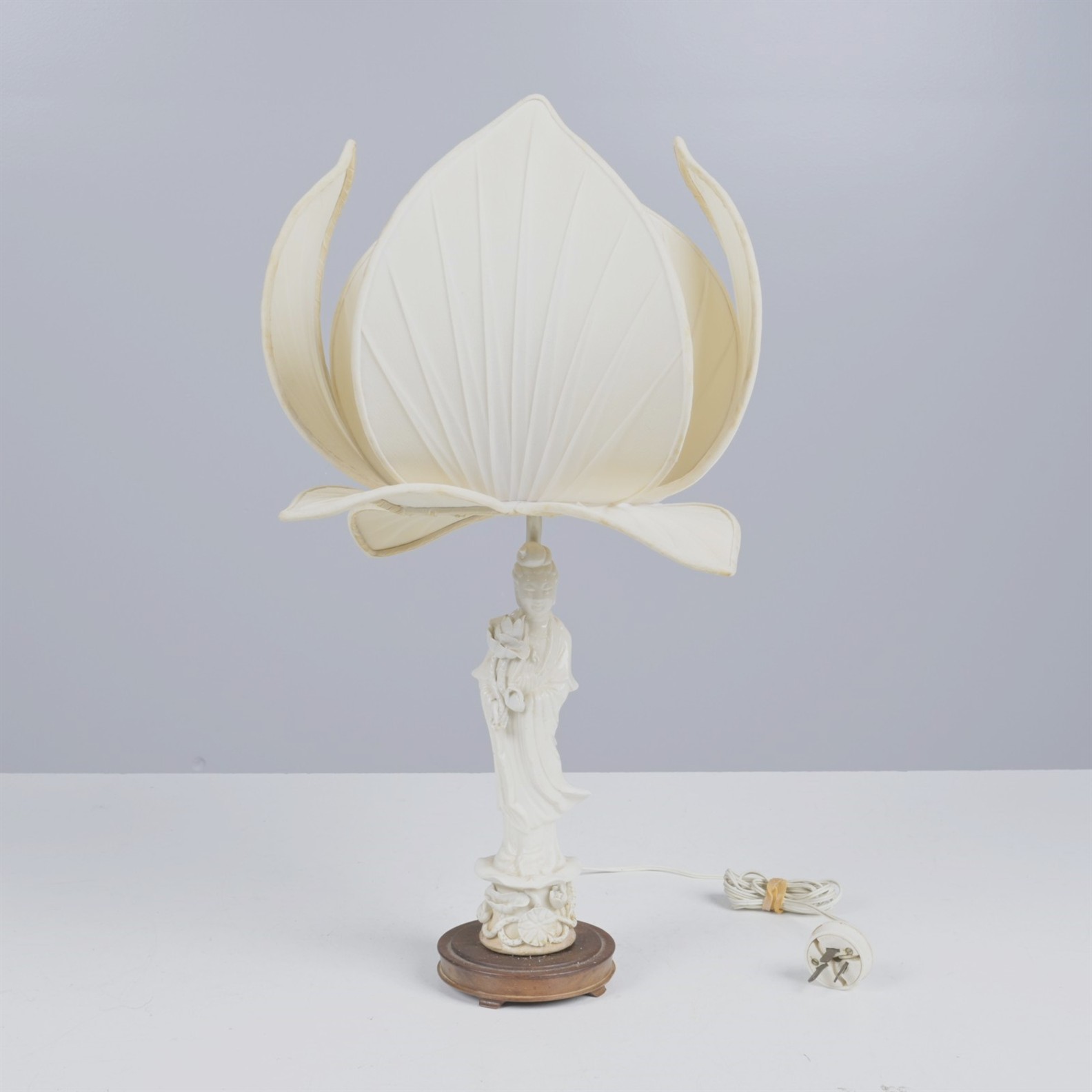 A WHITE PORCELAIN GUANYIN TABLE LAMP (A/F) (58CM H X 46CM DIA)