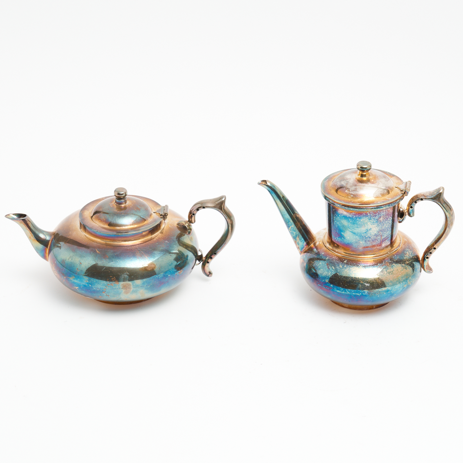 A ROBUR PERFECT TEAPOT TOGETHER WITH A CHALLENGE SILVER PLATE COFFEE POT H.17CM