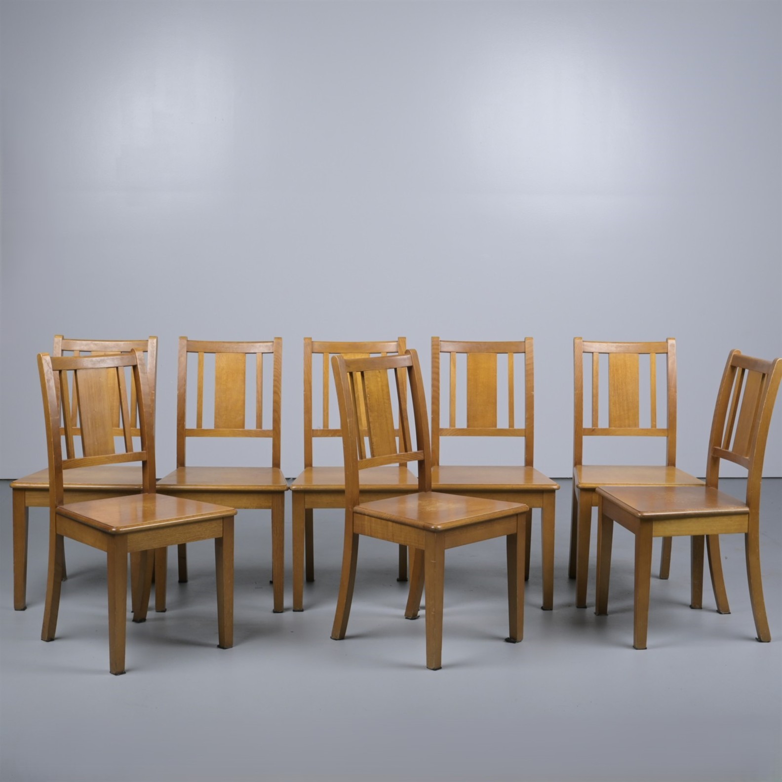A SET OF EIGHT BLACKWOOD DINING CHAIRS (A/F) (94H X 49W X 52D CM)
