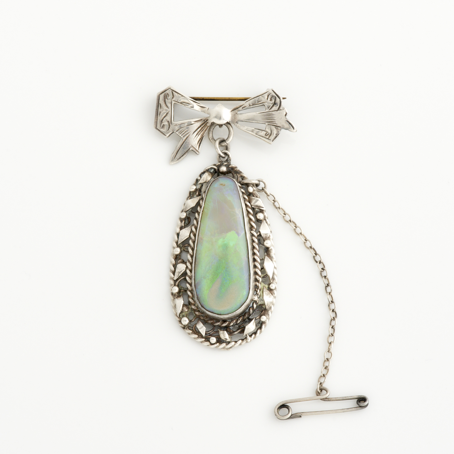 A VINTAGE SOLID OPAL BROOCH IN STERLING SILVER, 50MM